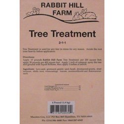 -Apply 15 pounds Rabbit Hill Farm Tree Treatment per 200 square feet.